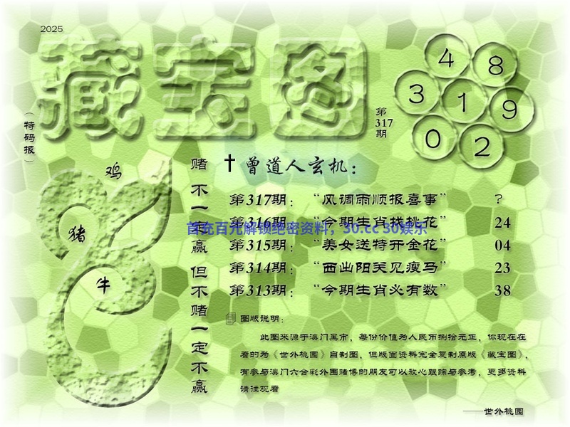 319期:特码暗语/曾道人救世心经/攻特料/六合心经/平码生肖点将