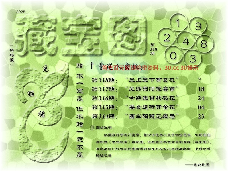 319期:电脑推算/三字解平特/藏宝特码诗/一句输尽光